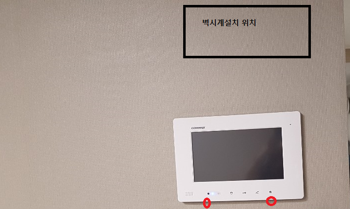 배선 관계상 월패드 위쪽에 LED 벽시계를 설치하는것이 배선 작업이 편리합니다.