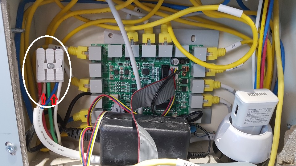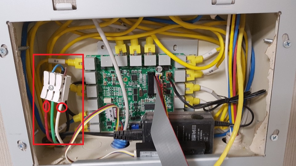 3. LED 벽시계 설치 위치 부터 월패드안 (위그림 usb 전기 플러거까지) 배선 연결하기