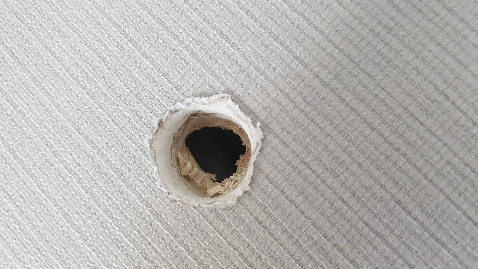 LED 벽시계 설치위치에 구멍을 뚫었습니다.