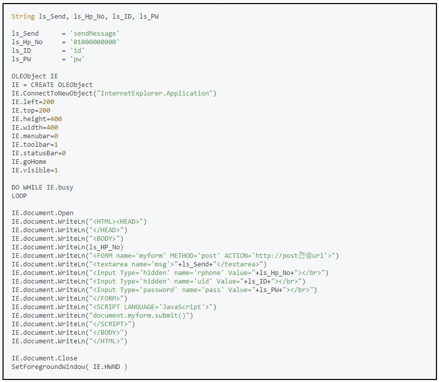 String ls_Send, ls_Hp_No, ls_ID, ls_PW, ls_arg, ls_response_text