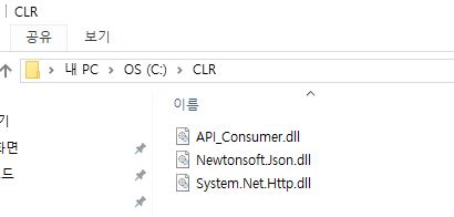 5. C 드라이버에 CLR 이란 폴더를 만들고 아래 3개의 DLL를 복사하여 붙여넣기 합니다.