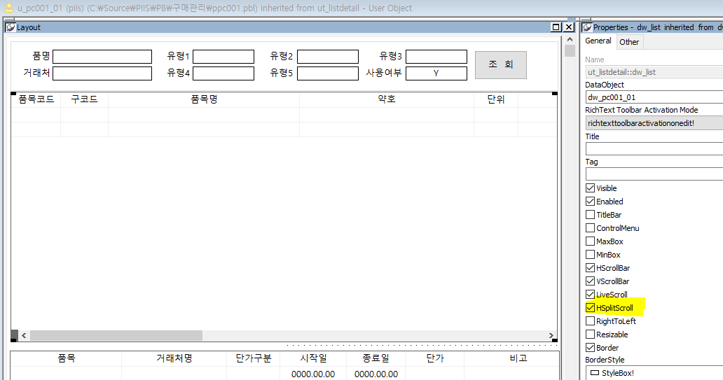 위 이미지와 같이 datawindows 의 필드가 많은 경우 품목명으로 기준으로 틀고정 하는 방법에 대해서 설명 할 까 합니다.