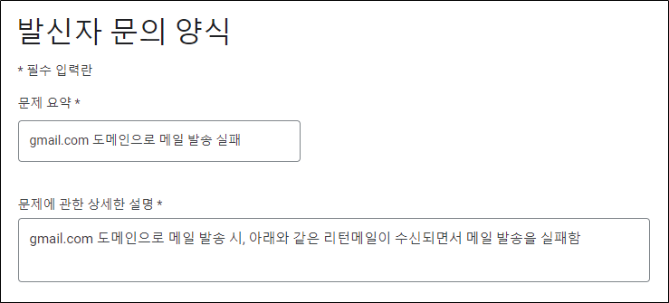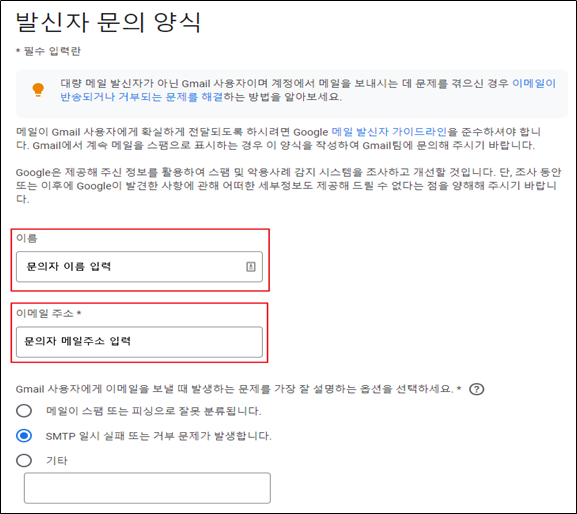 발신자 문의 양식 - Gmail 고객센터