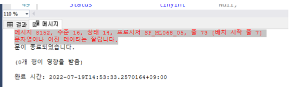 6) 아래와 같이 sp에서 문자열이나 이진 데이터 잘리는 오류