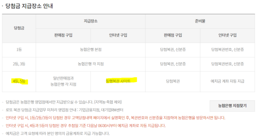 대부분의 담청금은 5등, 4등 담첨금은 예지금으로 자동 지급됩니다.