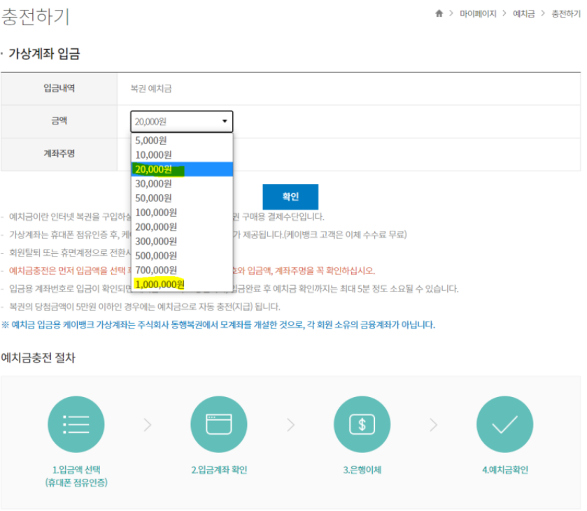 4. 충전은 5천원 부터 최대 1백만원 까지 충전 가능 합니다.