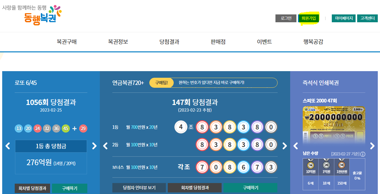 1.동행복권 홈페이지에서 회원가입 클릭