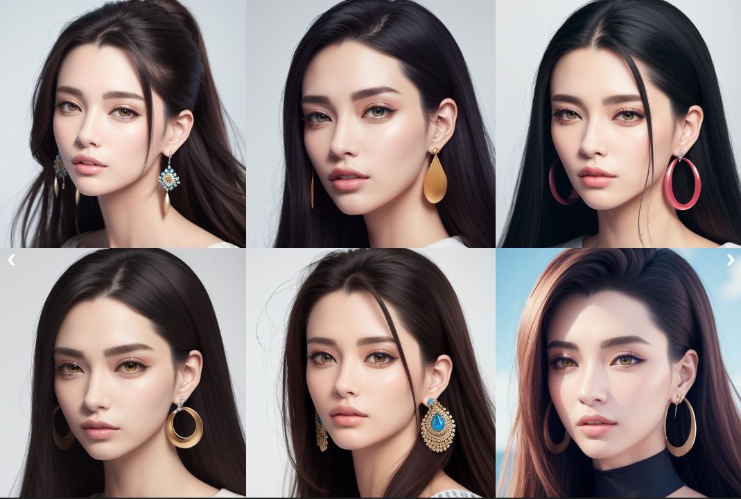 4. Generate 로 생성시 아래와 같이 윈본이미지를 베이스로 큰 귀걸이를 착용한 6개의 이미지가 생성된 것을 알 수 있습니다.