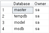 그래서 아래 명령어로 Database 소유자를 확인 해 보았습니다.