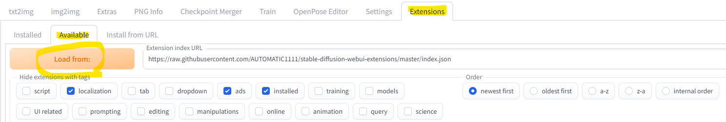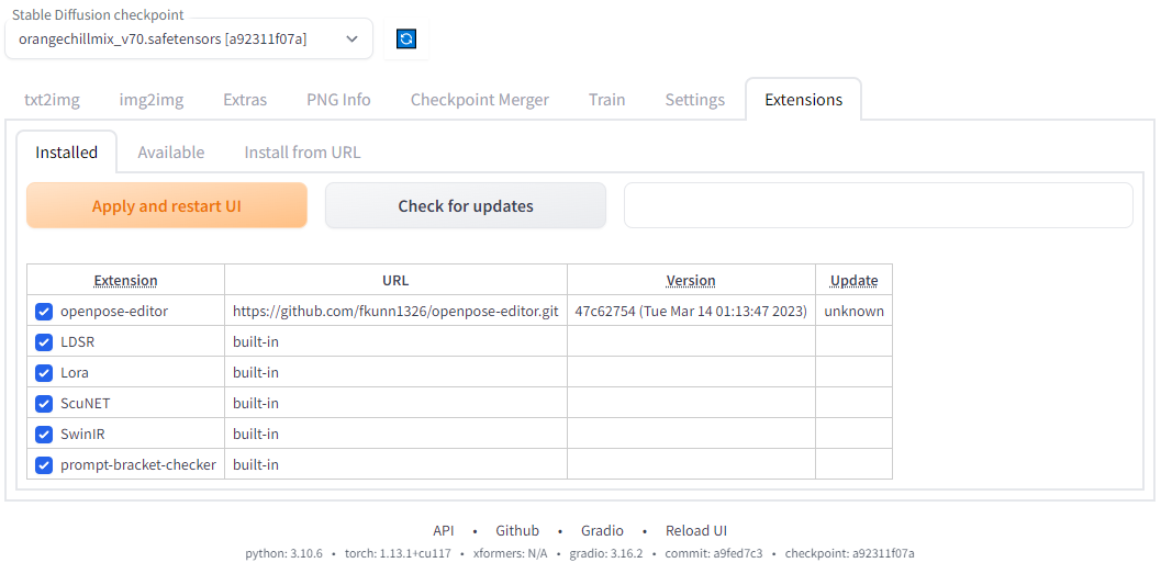설치가 완료되면 installed 항목에 openpose-editor 항목이 상단에 보임