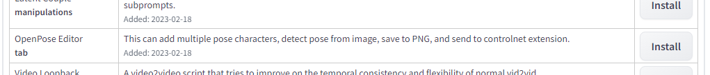 리스트 중에 OpenPose Editor tab을 찾아서 install 을 클릭하여 설치
