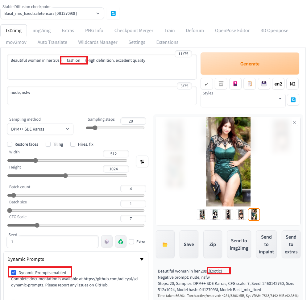 2. (__fashion__) 으로 입력한 프롬프트 결과 화면이 (Exotic) 로 입력된것을 확인 할 수 있습니다.