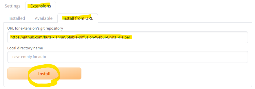 설치주소 : https://github.com/butaixianran/Stable-Diffusion-Webui-Civitai-Helper