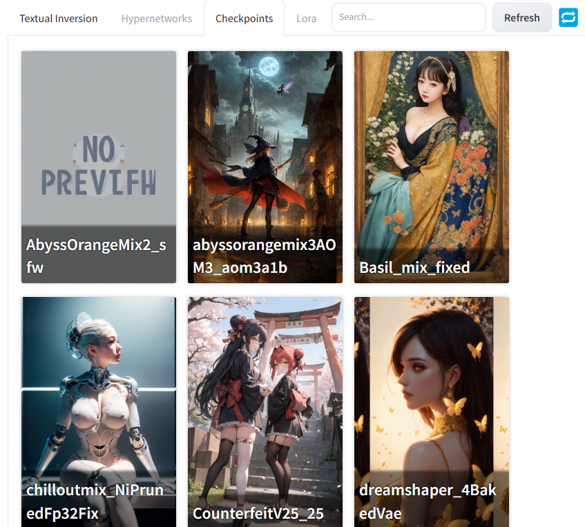 모델 및 로라 등을 미리보기 화면을 통해 손쉽게 알 수 있게 해 주는 확장 프로그램 입니다.