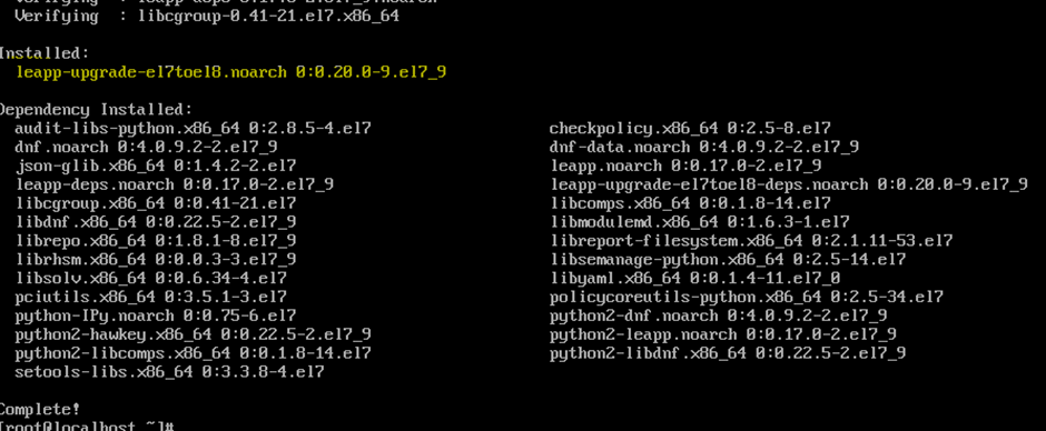 8) leap 유틸리티 설치 : yum install leap-upgrade