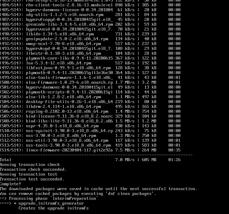 12) 문제가 없으면 leap upgrade --target 8.8 명령어서 업그레이드 진행