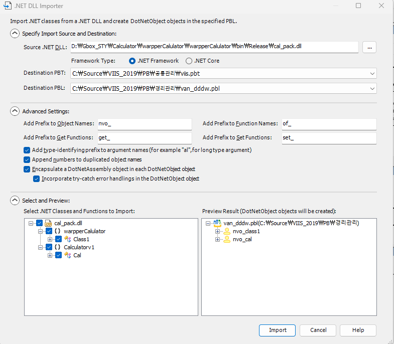 2. ... 클릭하여 사용하 DLL (.NET Framework, .NET Core) 선택